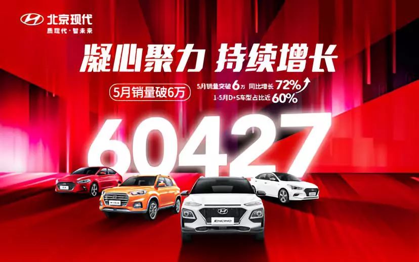 官方数据显示,2018年5月,北京现代销量为60427辆,同比增长72%。2018年前五个月,北京现代累计销售29万辆,同比增幅10%,领先行业平均水平。